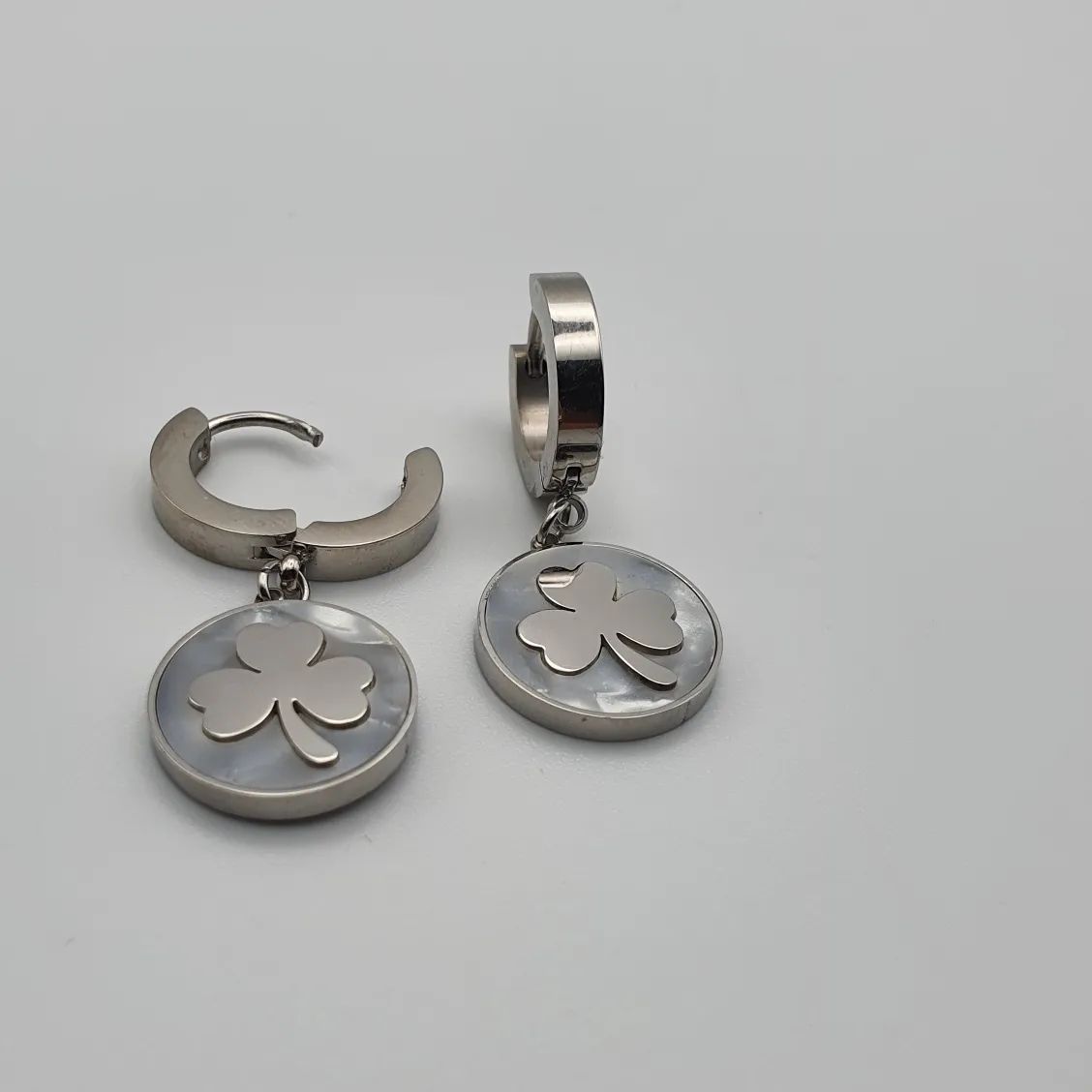 🔥 Gümüş renk sedef yonca kupe