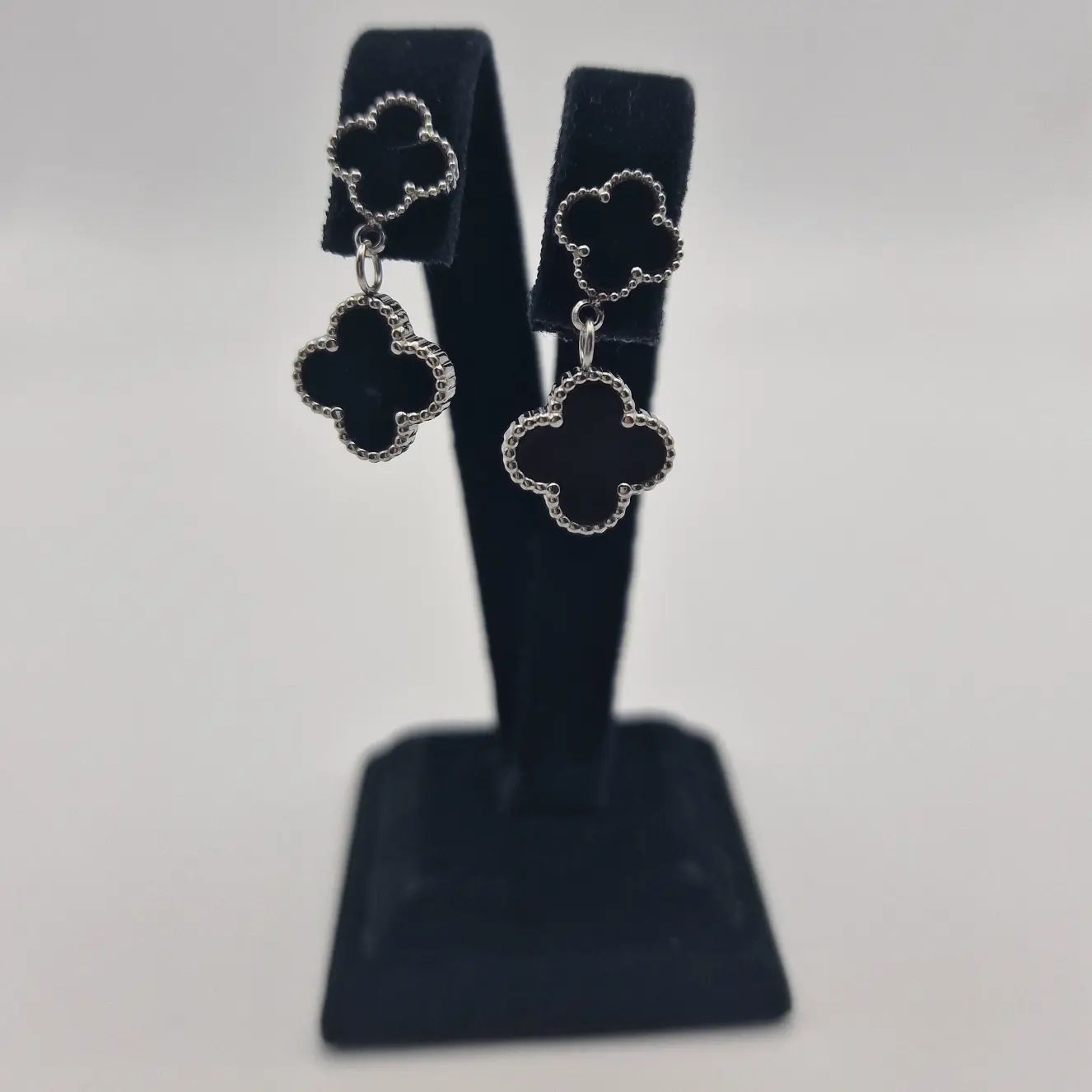 🔥 Gümüş renk siyah sedef küpe