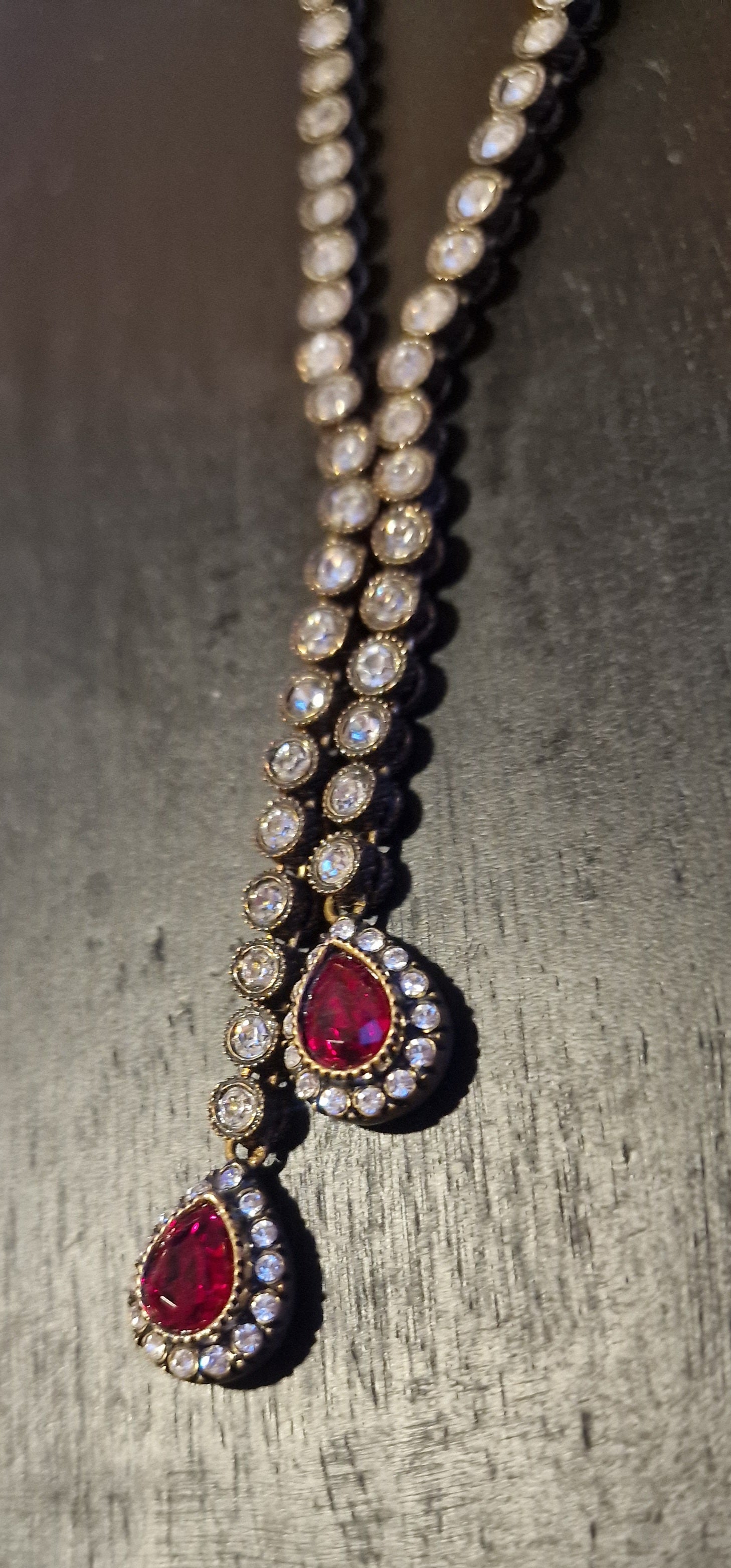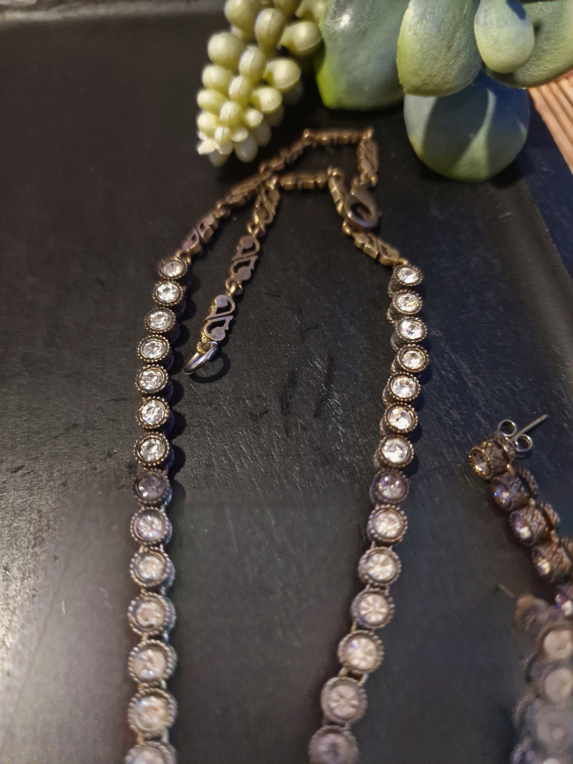 Das Schmuckset besteht aus einer Halskette und zwei Ohrringen.